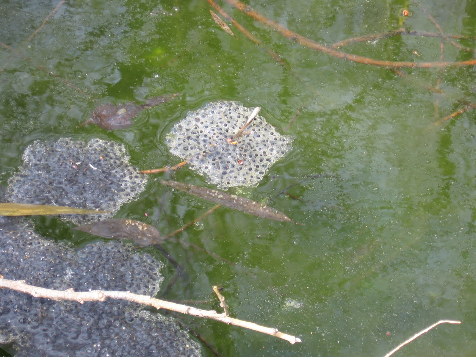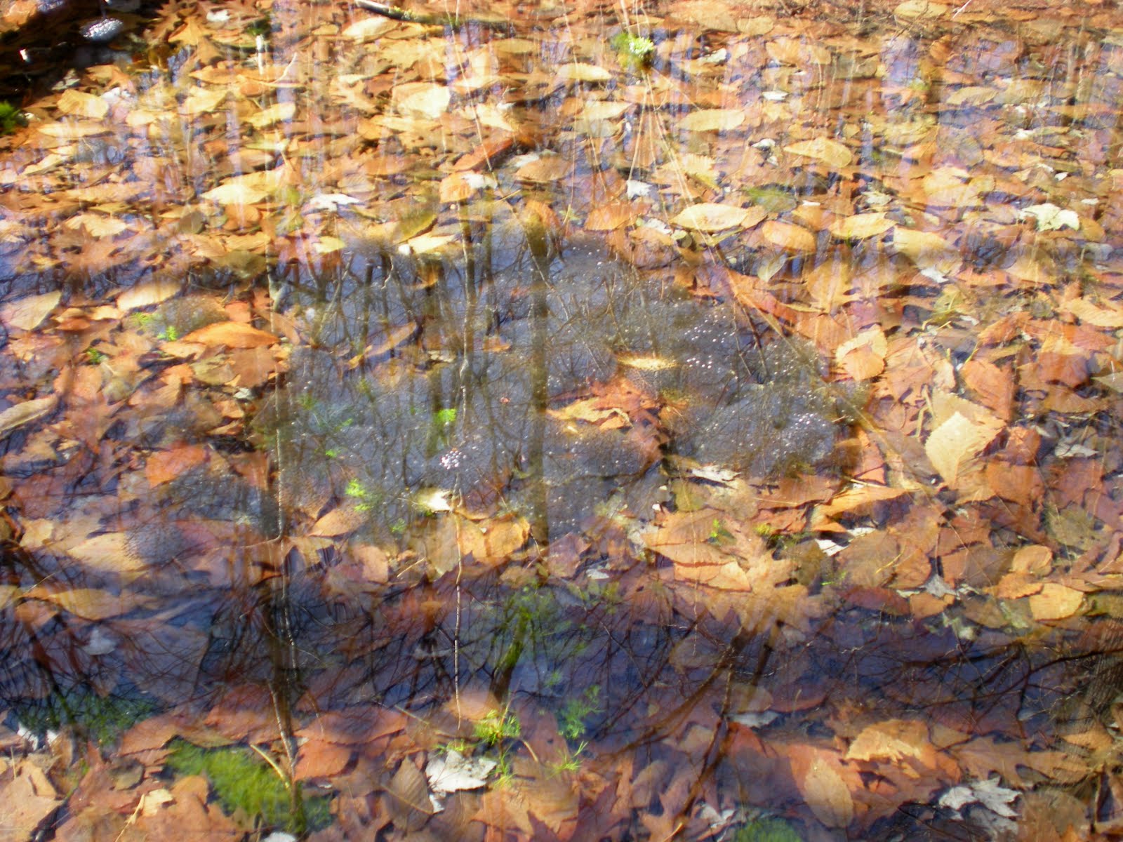 There are a thousand things to do today. We need milk, material for a home improvement project and garden supplies. But dog insisted we leave all of that behind and go for our morning walk. Yesterday’s warmth really encouraged spring to leap forward. There are bleeding heart shoots coming up now among the tulips. The crocuses are adding color to the lawn. The silence of the winter woods has been replaced by the melodious songs of robins, red-wing blackbirds, and much more. A bluebird flew by giving the gray woods a brilliant dab of blue. Down by the “frog ponds” a lone turtle has emerged from its winter nap. It sat on a log with neck outstretched soaking in the sun. Up on the hill, the hawks are fortifying their nest. Seventeen geese flew overhead in a noisy V. But a sure sign of new life to come floats in the vernal pool next to the road. There bulbous masses of wood frog eggs (see photo) are attached to twigs slowly incubating this year’s tadpoles. Dog and I saw all of this in just a 30 minute walk. So go out and enjoy your day even if it is just for a short while. Winter returns tomorrow.