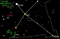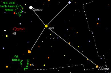 in two there, because of the presence of a dark cloud of dust known as the Cygnus