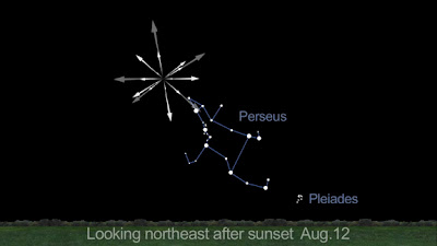 The best time for viewing is after midnight to the predawn hours when the numbers will be the highest. Find a spot away from a lot of ground lights and look to the northeast. If there is a lot of ground light, look to the darkest part of the sky. Like most meteor showers those with patience see the most. The meteors tend to come in batches out the constellation Perseus, hence the name. However, they can appear in any part of the sky but all their tails will point back to Perseus. This year the moon will have minimal effect on viewing. The Perseids occur every year as the Earth passes through a stream of dust particles and debris from the Comet Swift-Tuttle. These particles hit the earth’s atmosphere at speeds up to 140,000 mph and become heated to form bright streaks across the sky – shooting stars. The shower is at its peak or climax when the earth passes through the middle of the tail debris. For those willing to stay up later or get up extra early, there is an added treat as this meteor show has the most fireballs of all the meteor showers this year. So get out a blanket, lay on your back and enjoy the show. And don't worry if you miss the peak, the show this year lasts from July 17 - Aug 24th. Picture credit: NASA/JPL-Caltech.