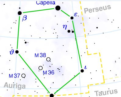 magnitude 0 star, Capella, and the other 4 are 2nd magnitude. Like so many other stars, Capella is a