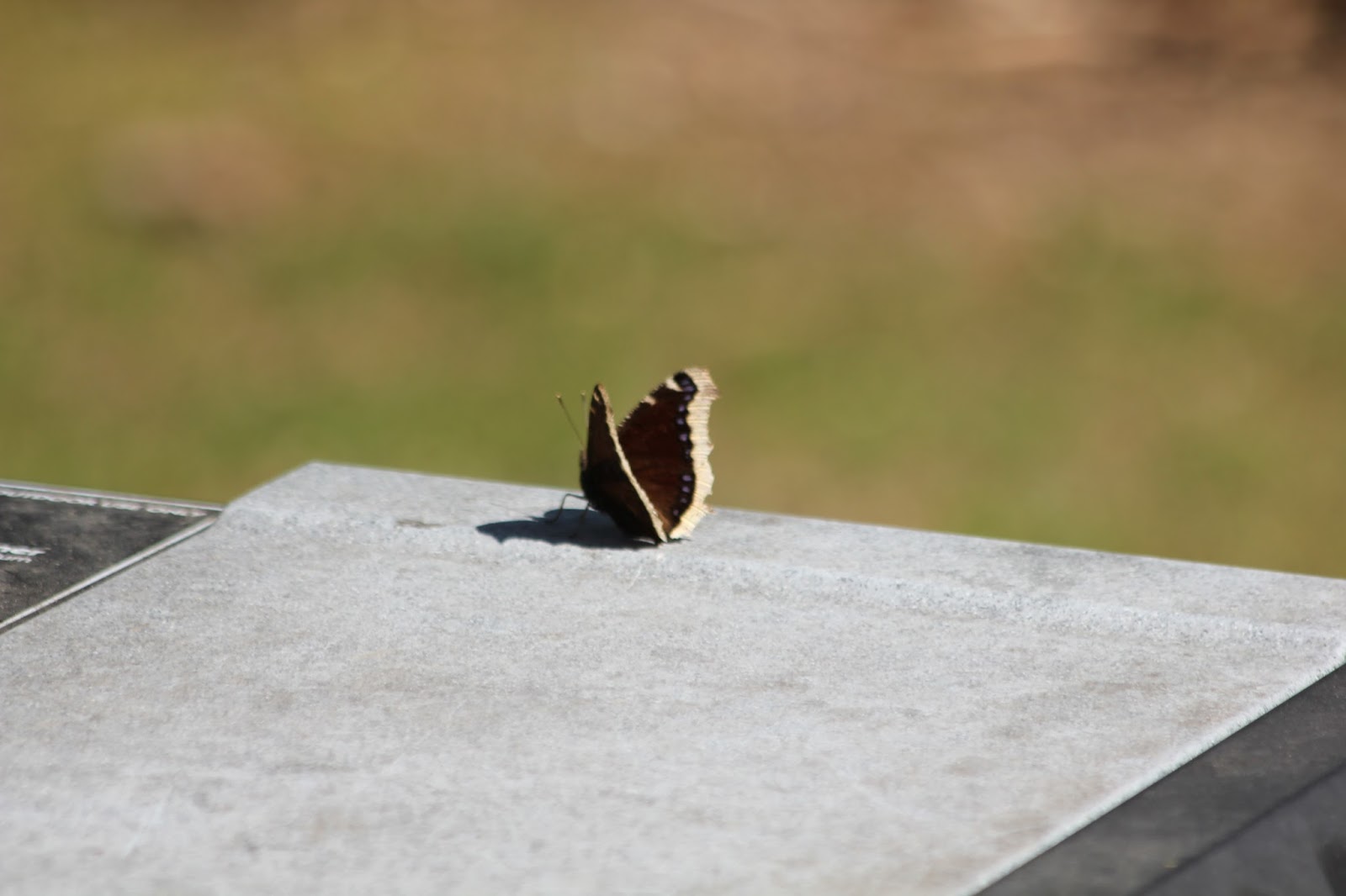 While hiking in late March, I saw my first butterfly of the season; a mourning cloak butterfly (Nymphalis antiopa). I wondered how could it be here so early when most butterflies are en route with the spring migration, and what is it feeding on as the nectar plants aren’t out yet? A few days later I saw a few more of these distinctive large butterflies, with their dark maroon/brown wings with a cream edge and iridescent blue spots just inside the light edges. This got me curious, so I did a little research. I learned that the mourning cloaks are out so early because they don’t all migrate like many other species of butterflies (the monarchs for example). They over-winter hiding in tree cavities and under loose bark in a state similar to hibernation. This gives them an advantage come the spring in that they don’t have to travel long distances to return, and can get a jump start on mating. The adult mourning cloaks feed primarily on tree sap and depend less on nectar, which would explain how they can survive this time of year. They also live up to a year, which makes them one of the longest living butterflies, if you consider how adult monarchs only live for two to six weeks! In the spring, the females lay their eggs on host plants such as willow, elm, hawthorn, hackberry, wild rose and poplar. The larvae which emerge are called spiny elm caterpillars, and they have black bodies with red dots down their back, red legs and a number of long black spines, plus shorter spines with white on the tips. They have voracious appetites for such small creatures and can grow up to two inches long before they pupate and go through the fifteen day process of metamorphoses before the beautiful adult butterflies emerge.